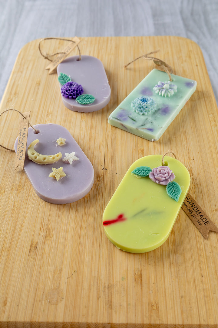 Bring beauty and freshness to your everyday spaces with these handcrafted wax hangers. Made with natural soy wax and decorated with floral details and dried botanicals, theyโre perfect for closets, drawers, or office corners.